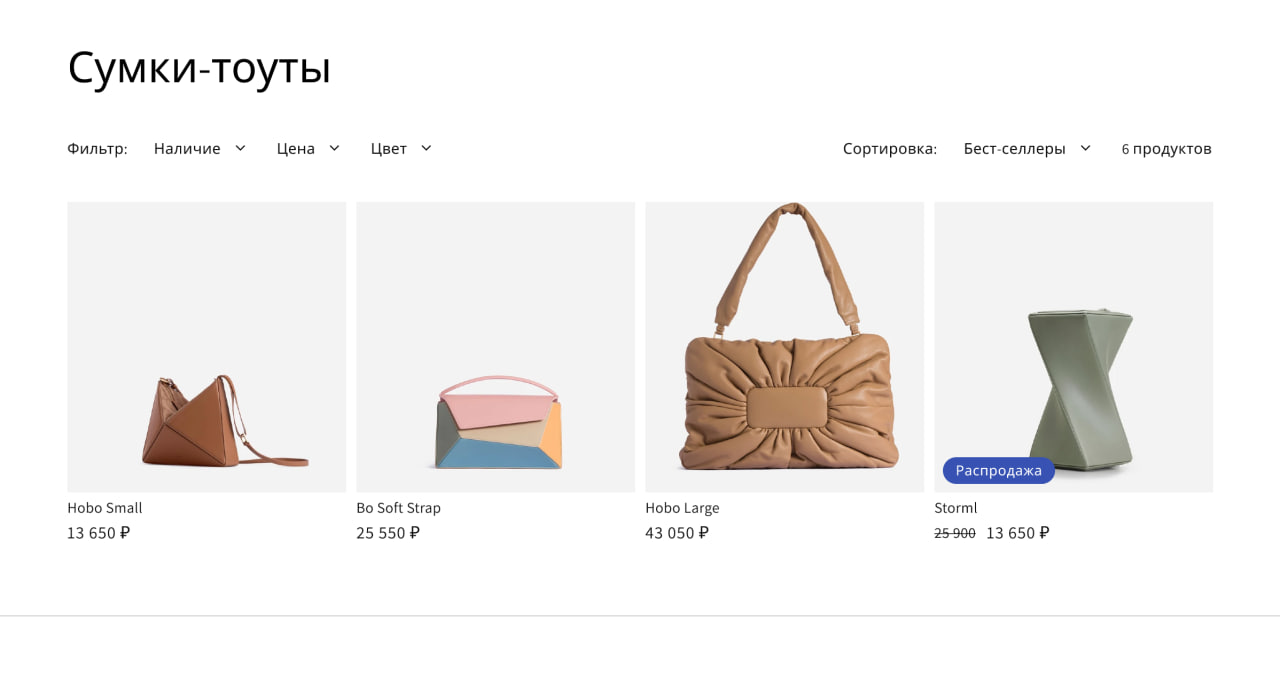 Реализовали понятный каталог с сортировкой и фильтрацией (наличие, цена, цвет) — пользователь быстро сужает выбор до нужных моделей, а карточки товаров сразу показывают ключевое: визуал, название и цену, снижая “трение” при выборе.