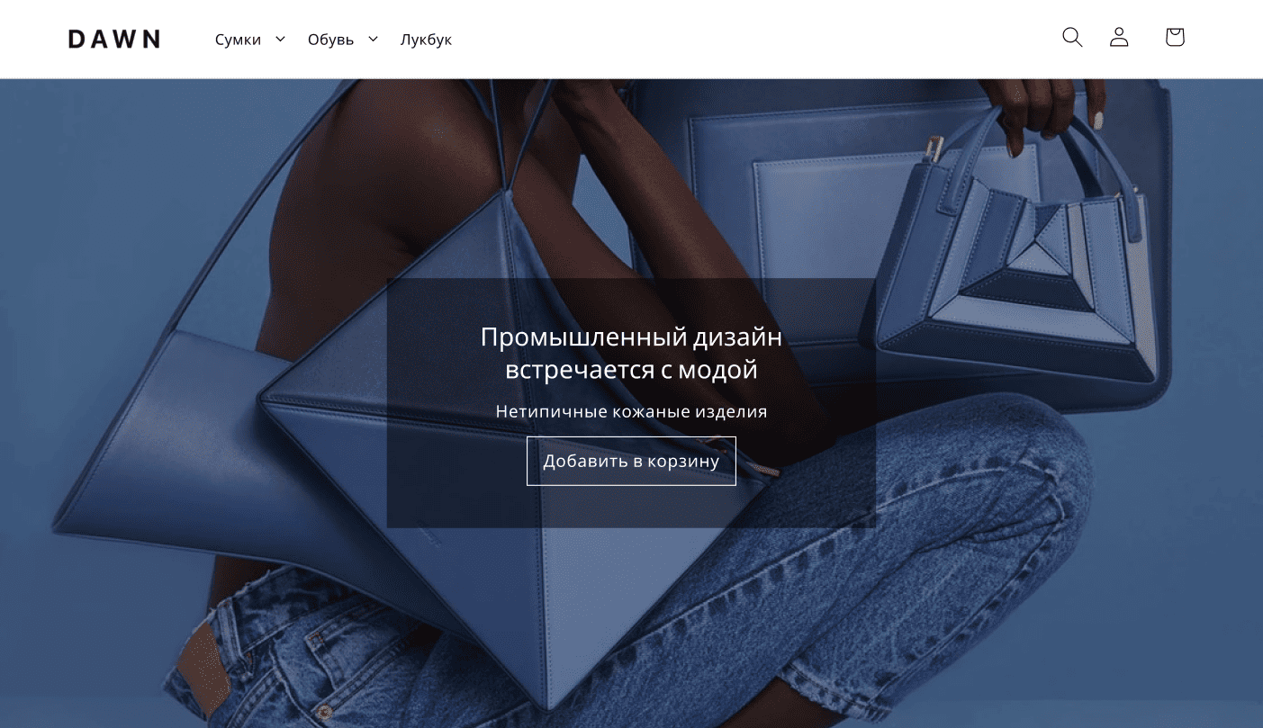 DAWN — современный интернет-магазин дизайнерских кожаных изделий с удобной навигацией, выразительным визуальным стилем и продуманным процессом покупки.